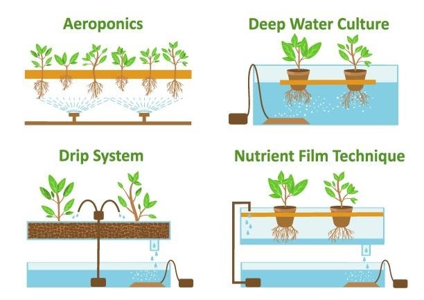 - Hydroponics: Growing crops in nutrient-rich water without soil.